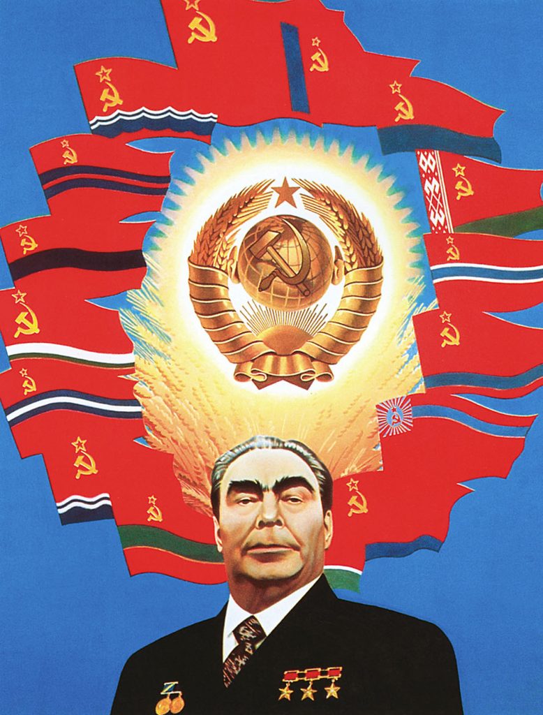 У меня была картина «Советский космос». Там был изображен Брежнев на фоне советской идеологической символики. В центре: солнце — герб СССР, вокруг: вращающиеся планеты — флаги республик сателлитов. Многие, глядя на эту работу, приходили в ужас, но были и те, кто удивлялся, почему я не лауреат Ленинской премии и не народный художник СССР.