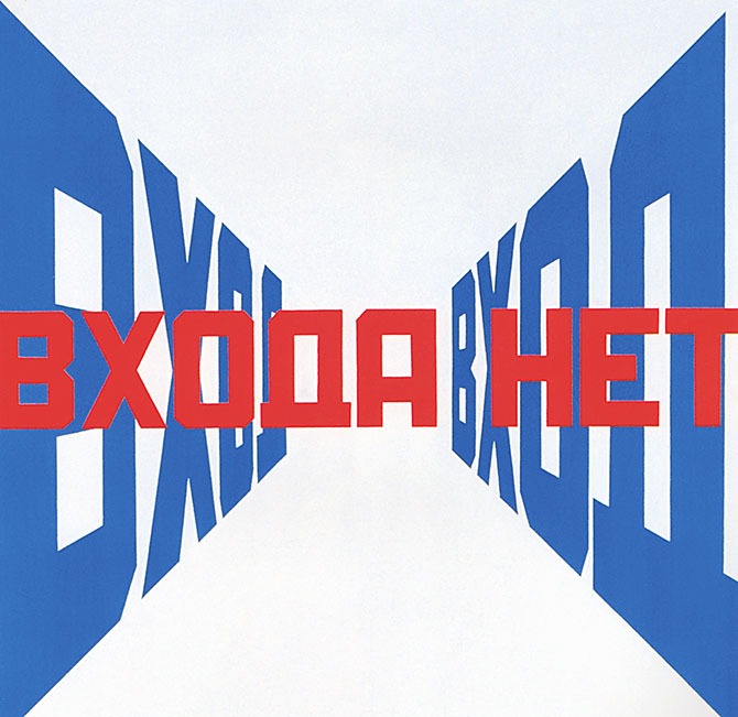 Для меня «Слава КПСС» — формула свободы. Именно из ощущения возможности собственного движения сквозь поверхность картины возникло следующее про изведение «Иду», посвященное, конечно, вовсе не полету в космос, а возможности уйти сквозь картину, выскочить за пределы социального пространства. Я ведь не знаю, какое пространство откроется по ту сторону картины. Знаю только, что социальным оно не будет. Использование двойного пространства дает мне точку опоры, особый язык, на котором и можно говорить о социальном. Картина наглядно демонстрирует, что социальное пространство не безгранично, что у него есть предел — и его можно увидеть в целом, как бы со стороны, а не только изнутри. При этом речь здесь идет вовсе не о социальной критике. Я этим никогда не занимался, и напрасно Деготь мне ее приписывает. Моя задача — выразить нашу жизнь такой, какой она является моим глазам, совершенно не стараясь ее специально интерпретировать.