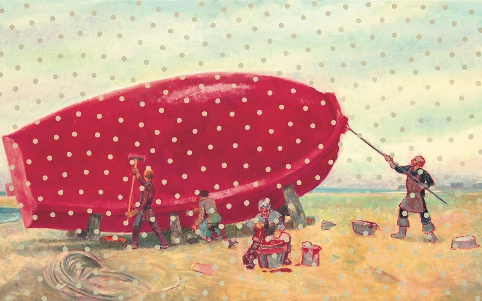 Their cross-medium works are deliberately hard to categorise, with the pair presenting many pieces as the work of fictional artists, parodying the staid art of the regime, or the absurdity of living under Soviet bureaucracy. Arbitrary, found objects often find their way into canvases – coat hangers, shovels, mannequin arms – a comment on how the regime would pore over every-day items, worming its way into every facet of life.