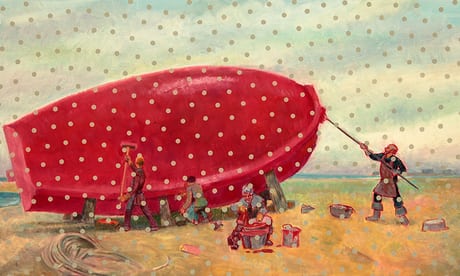 This art is tragicomic, and often mordant. Forced to work under a pseudonym in the 1970s, when his art had become too controversial, Ilya Kabakov began to invent alter egos. Most piquant is the official socialist realist painter commissioned to produce thriving scenes of collective farms and modern high-rise cities. Alas the commission falls through and the canvases decline in storage. Years later, to cheer himself up, the artist tries gluing flowers to the pictures and calling them the Holiday series. But the flowers are just fading sweet wrappers that can’t conceal the banality beneath. The result is absurd and yet sinister too, invoking the fate of the many Soviet painters who fell out of favour.