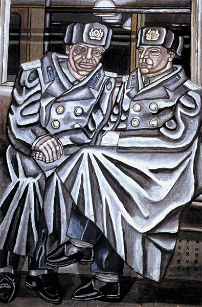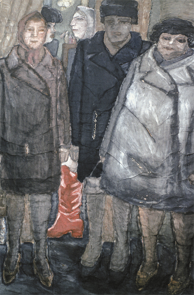 Но вот мир создан. Не таким он вышел, каким задумал его создатель. И несовершенство мира стало главной темой работ Бориса Турецкого, созданных в фигуративный период 1960-х. Это преимущественно огромные, до двух метров, гротесковые гуаши. По словам современника Турецкого художника Юрия Злотникова, «его люди в трамваях, метро, продавщицы – люди-монстры, готовые наступить на болезненно чувствительную душу не думая». Искусствоведы неоднократно отмечали сложную связь этих работ с фресками Диего Риверы. Позже, в годы перестройки, именно эти гуаши принесли Турецкому известность соцартиста. Фактически ими только он более или менее и стал известен широкой публике, хотя, например, М. Рогинский назвал эти работы «дурдомом».