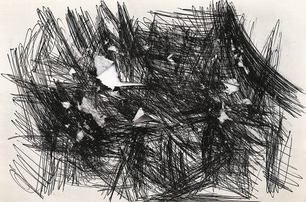 Еще не забылась выставка Дмитрия Лиона, прошедшая в тех же стенах (о ней писал наш журнал). Тогда, движимые малейшим движением воздуха, парили в галерейном пространстве столь же воздушные Лионовы «почеркушки». Теперь то же пространство набухло монохромной черно-белой графикой, совсем небольшой по размеру, открывшей, однако, «первозданное таинство отделения света от тьмы, земли от неба» (Евгений Барабанов).