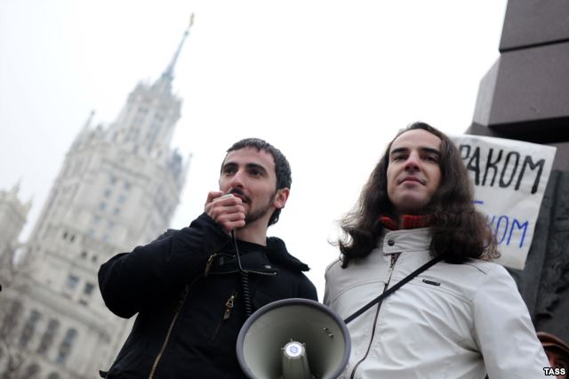 19 сентября 2014. Участие (вместе с Милоновым) в нападении в Петербурге на Квир-фест